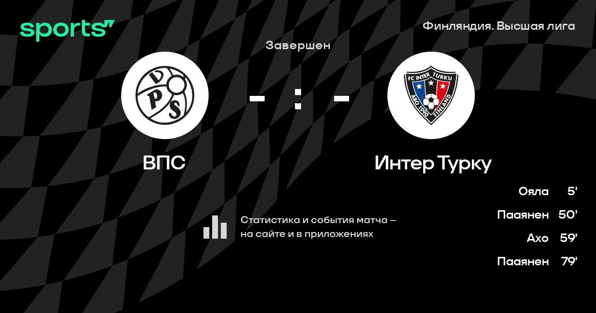 | 1 | Интер Турку | 26 | 15 | 9 | 2 | 46 | 12 | +34 | 54 | ||