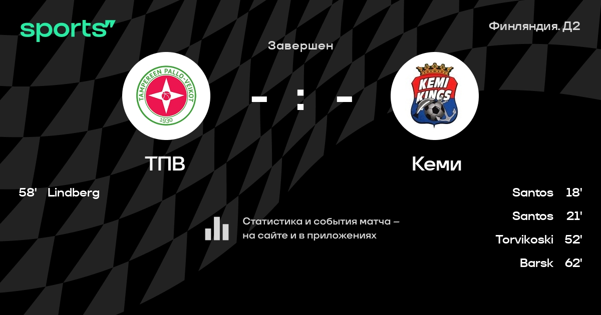 Mäkipörhölä - Pätsi, Ikäläinen, Ряйхя, Palosaari, Graciano, Кененен - Tyystälä, Torvikoski - Santos, BarskЗапасные: Импио, Isteri, Лоусте, Paavilainen, Siekkinen