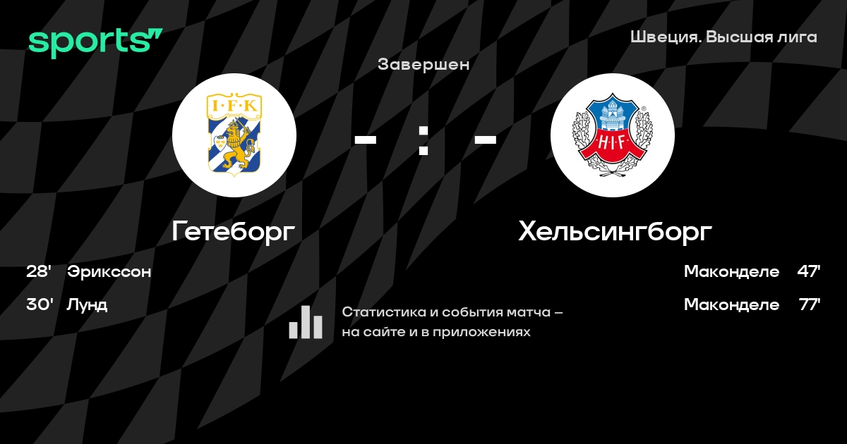 Ханссон - Хольгерссон, Андерссон, Экстранд, Нильссон, Вальстед - Ландгрен, Svanbäck, Малангу, Маконделе, Скуласон -