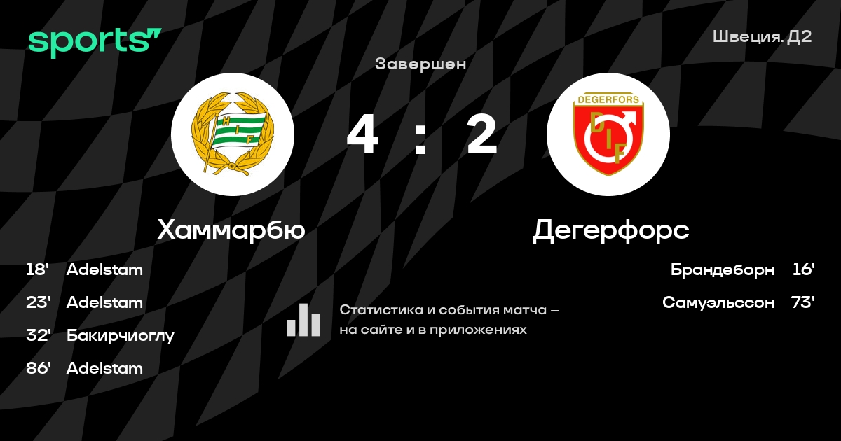 Edwards - Holmberg, Jakobsson, Ольссон, Эрикссон, Сундгрен - Андроник, Jernberg - Ренни, Брандеборн, СамуэльссонЗапасные: Amamoo, Medvegy, Hjärpe, Аяз, Karlsson, Nilsson, Андерссон