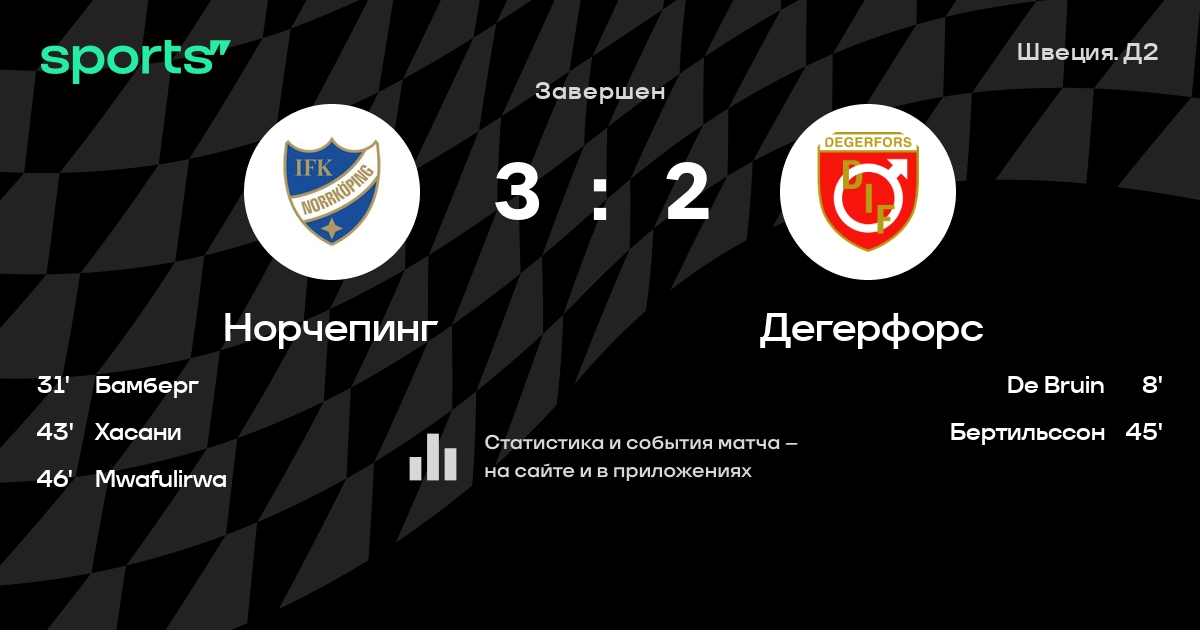 Westberg - Реннеклев, Раку, Викландер, Whass - Lindskog, Dybendal, Бамберг - Cakic, Хасани, MwafulirwaЗапасные: Митов-Нильссон, Гуннарссон, Rickhammar, Jansson, Танкович