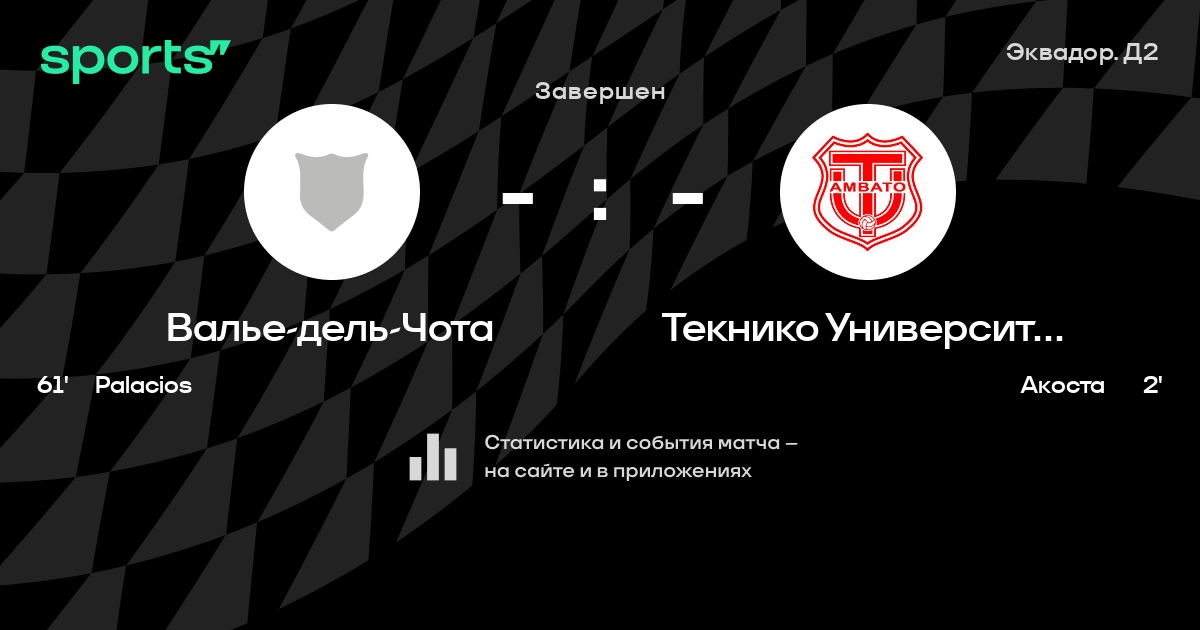 Валье-дель-Чота – Текнико Университарио: коэффициенты