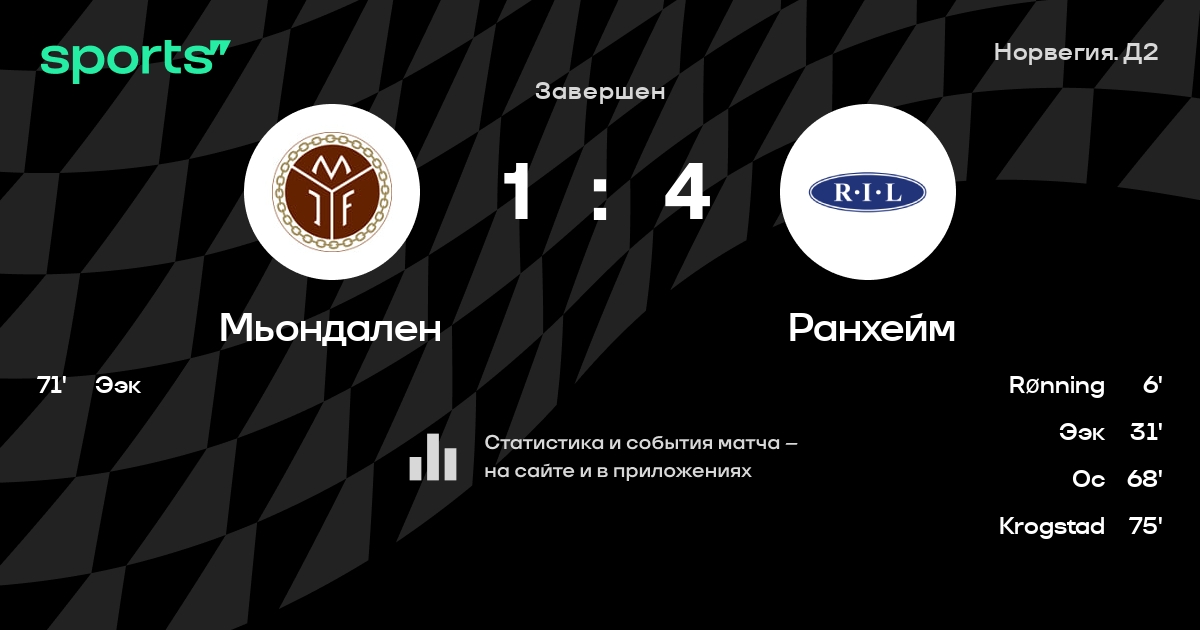 Барли - Holmvik Malmo, Ээк, Tronseth - Асен, Лекберг, Rønning, Стильсон, Региниуссен, Ос, Блакстад - Запасные: Sleipnes Sivertsen, Kråkmo, Skjølberg Krogstad, Карлсен, Reginiussen, Бюэ