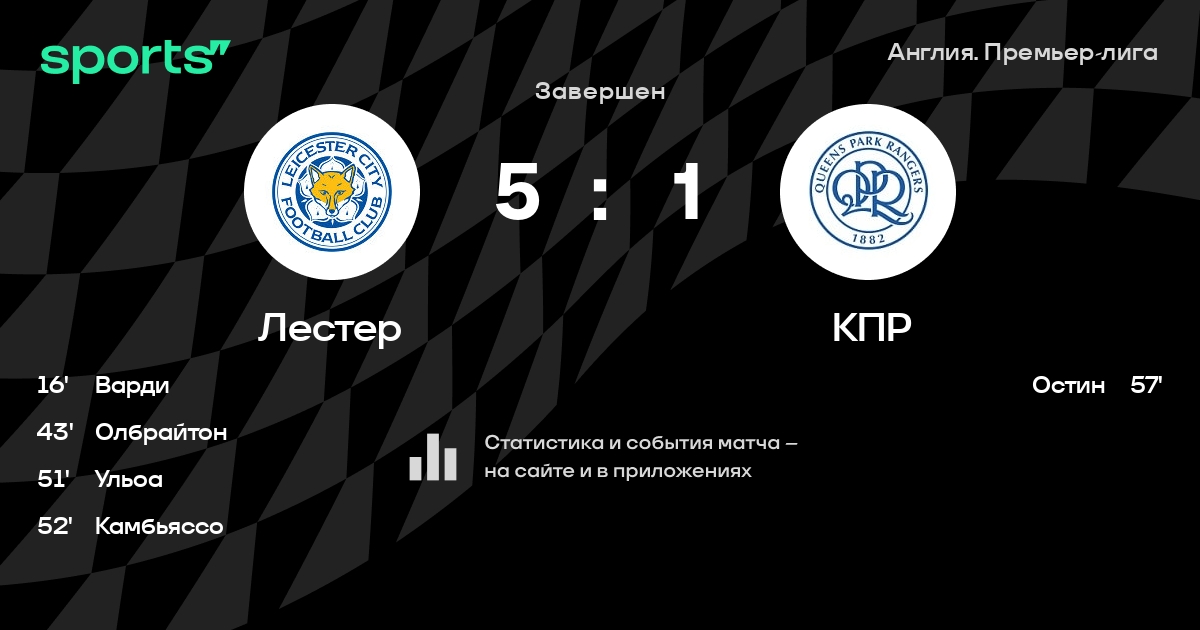 Шмейхель - Морган, Хут, Василевски - Шлупп, Марез, Кинг, Камбьяссо, Олбрайтон - Варди, УльоаЗапасные: Шварцер, Кончески, де Лат, Дринкуотер, Хэммонд, Крамарич, Вуд