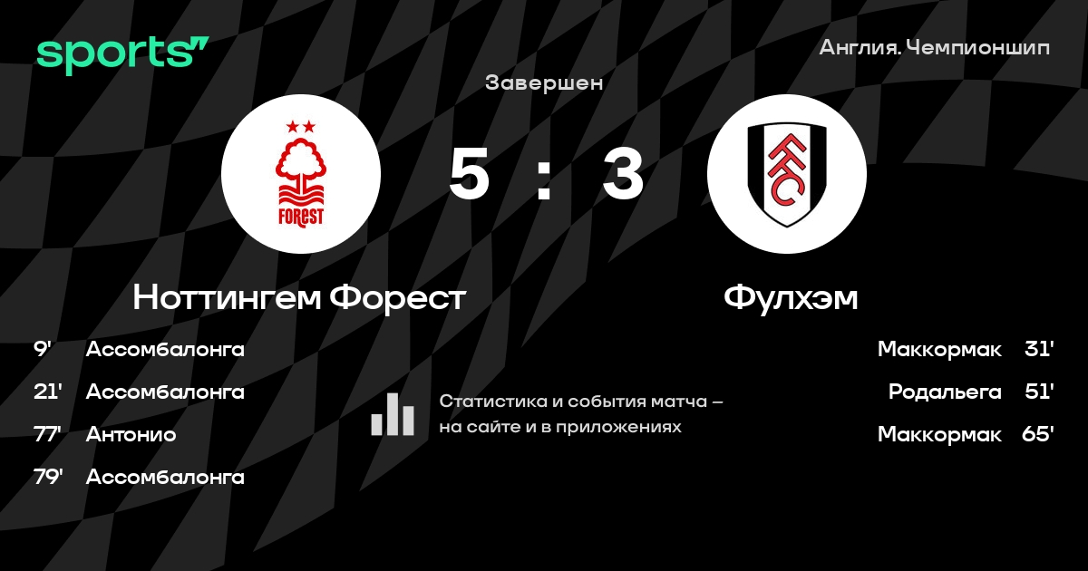Чемпионшип. 7-й тур. «Ноттингем Форест» одолел «Фулхэм» и другие результаты