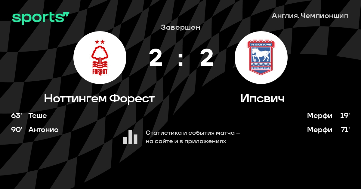 Чемпионшип. 11-й тур. «Ноттингем Форест» сыграл вничью с «Ипсвичем» и другие результаты