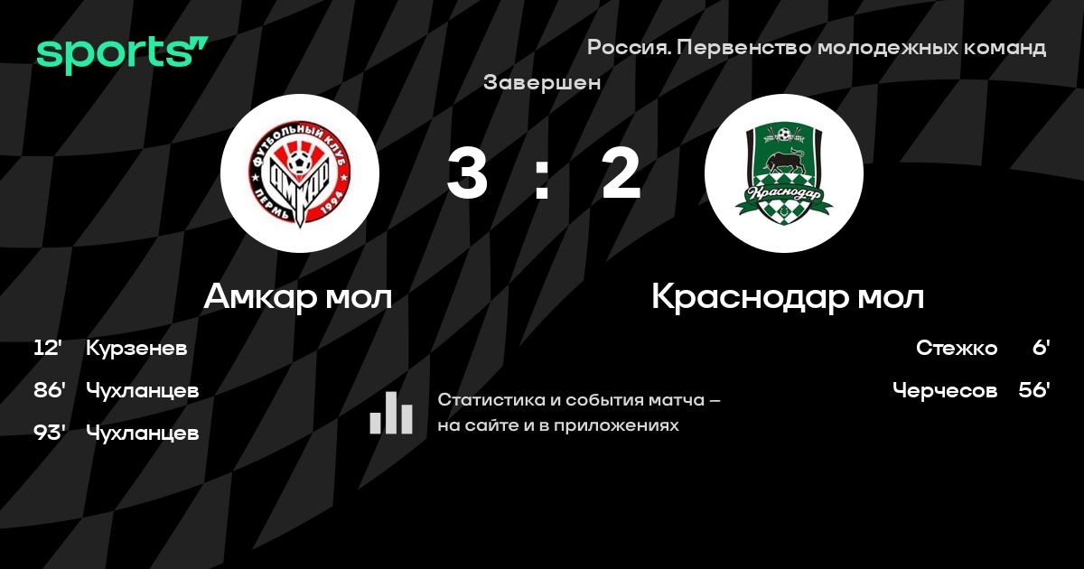 Первенство молодежных команд. 8-й тур. «Амкар» одолел «Краснодар» и другие результаты