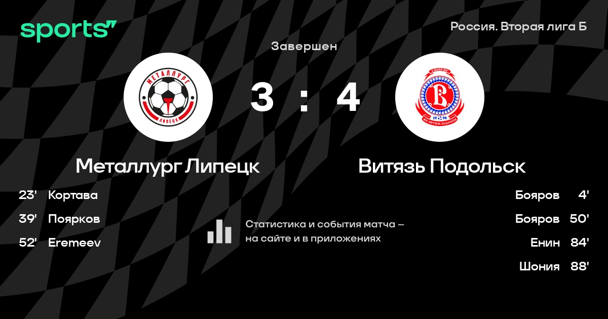 Металлург Липецк – Витязь Подольск: коэффициенты