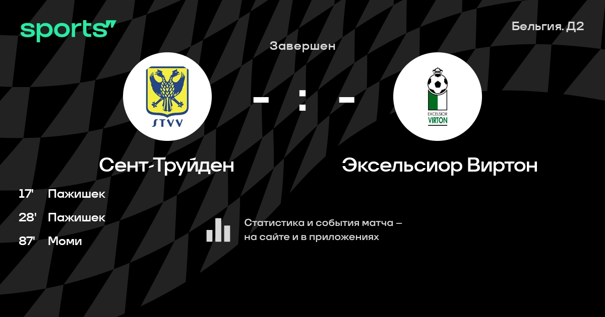 | 1 | Сент-Труйден | 34 | 24 | 7 | 3 | 62 | 28 | +34 | 79 | ||