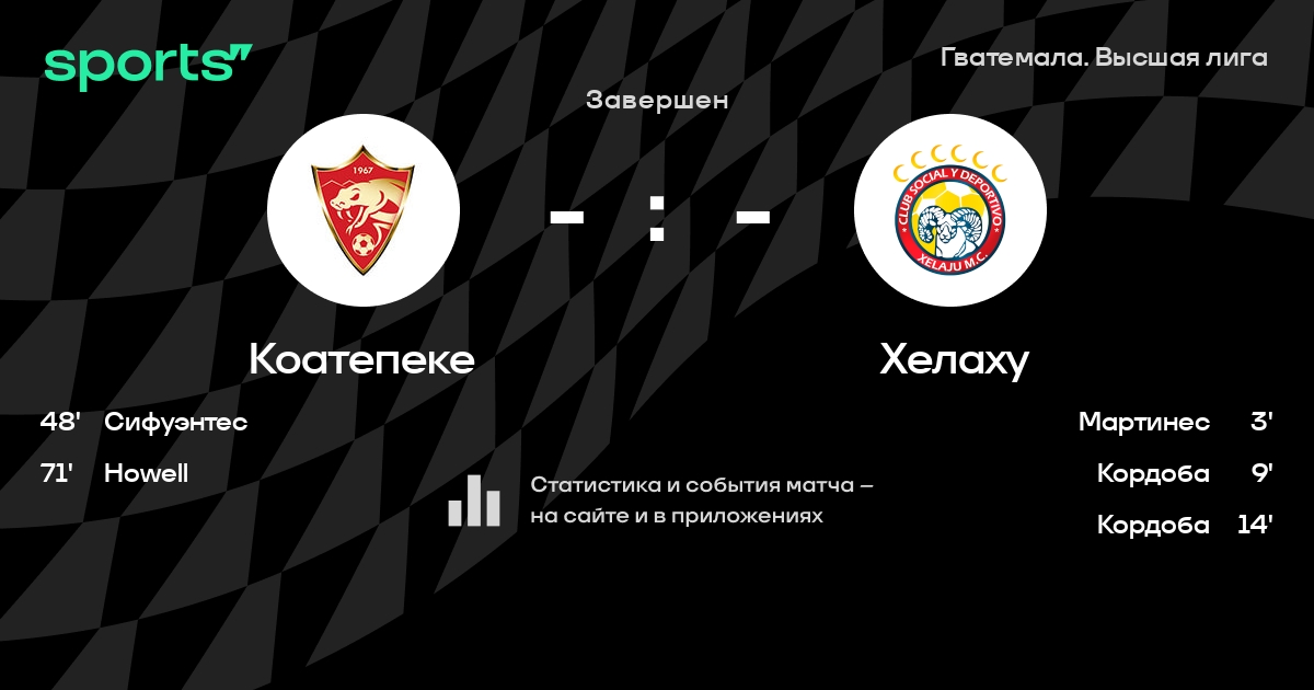 Мендоса - Жулиано Ранжел, Сифуэнтес, Гусман, Хирон - Арриола, Самайоа, Эстакуй - Мартинес, Мартинес, КордобаЗапасные: Эстрада, Santiago Taylor, Pelicó Batres, Хукуп, Flores Felix, Porras García, Лонго