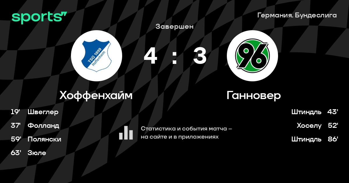 Бауманн - Ким Чжин Су, Бичакчич, Зюле, Бек - Полянски, Швеглер, Цубер, Фирмино, Фолланд - ШипплокЗапасные: Граль, Салихович, Штробль, Руди, Модест, Эльюнусси