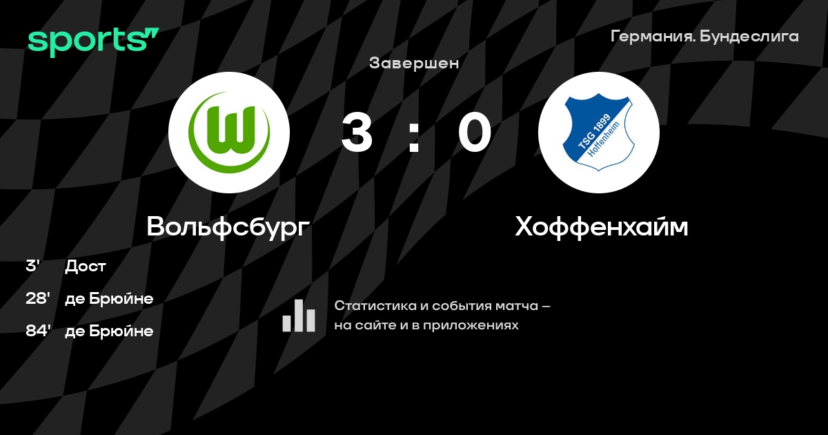 «Вольфсбург» – «Хоффенхайм». Де Брюйне забил 5 мячей в трех последних матчах