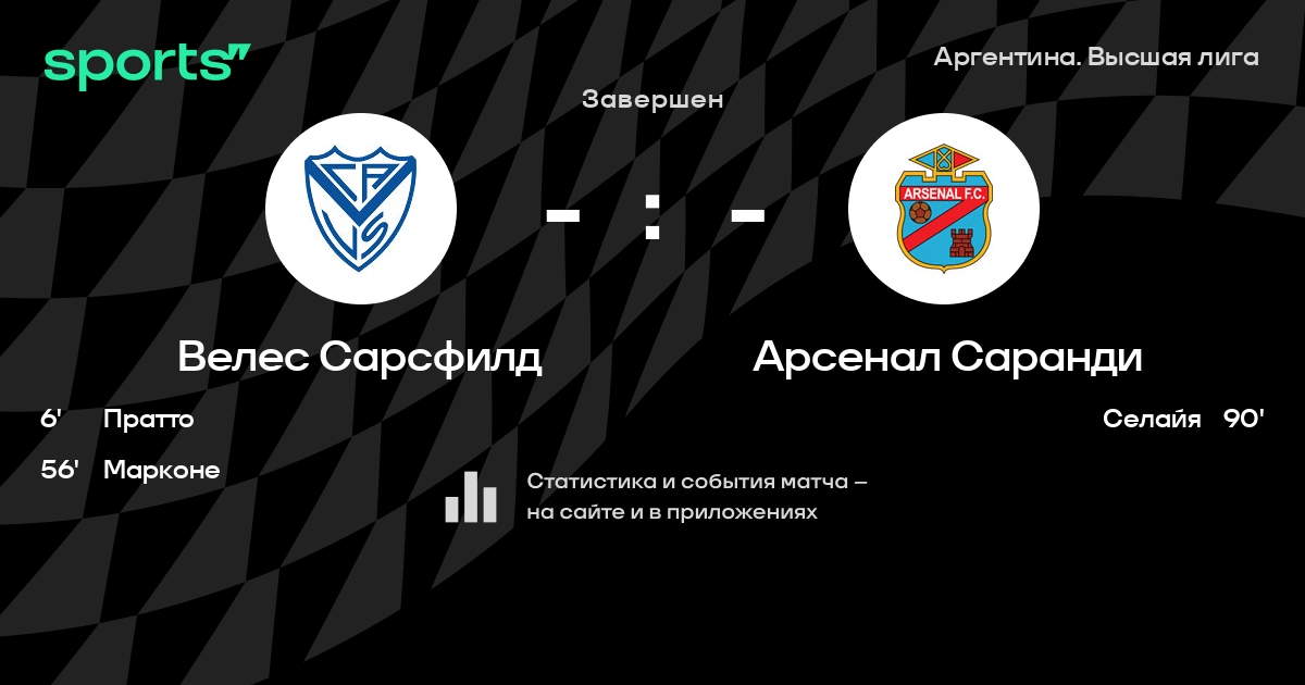 Трансляция Велес Сарсфилд - Арсенал Саранди