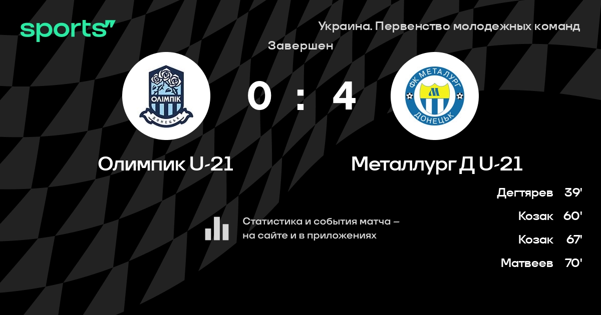 Олимпик U-21 – Металлург Д U-21: коэффициенты