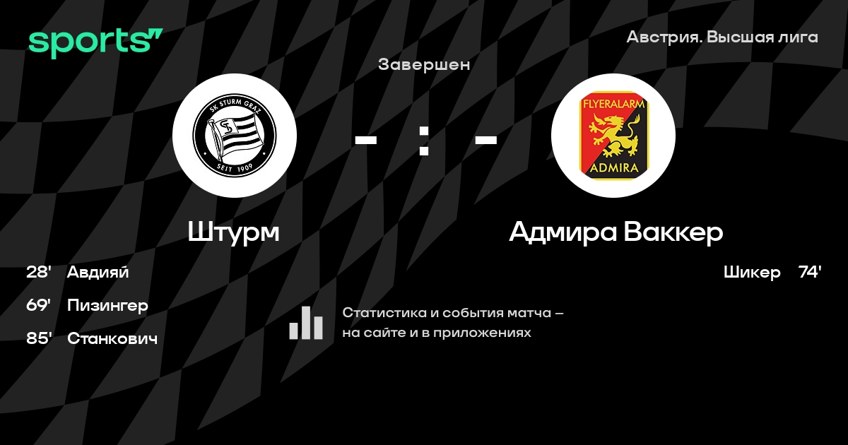 Гратцей - Клем, Шпендльхофер, Пфингстнер, Эренрайх - Пизингер, Хаджич, Авдияй, Станкович, Шик - КинастЗапасные: Пликетт, Ощипко, Шарифи, Грубер, Эдомвоньи, Тадич, Шмербек
