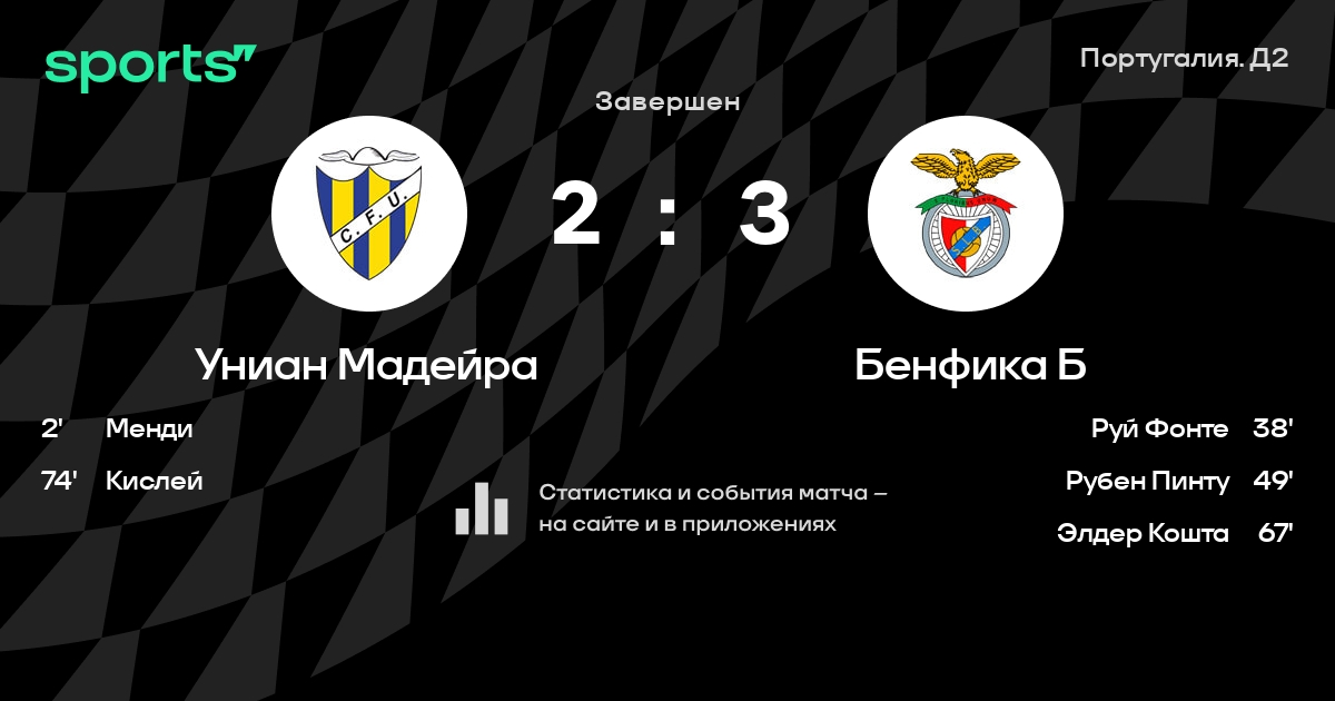 Бруну Варела - Ребошу, Линделеф, Валенте, Семеду - Нуну Сантуш, Аморим, Рубен Пинту - Элдер Кошта, Руй Фонте, ГедешЗапасные: Мигел Сантуш, Алешандре Алфаяте, Жоау Нунеш, Фабиу Кардозу, Рошинья, Долли Менга, Виктор Андраде