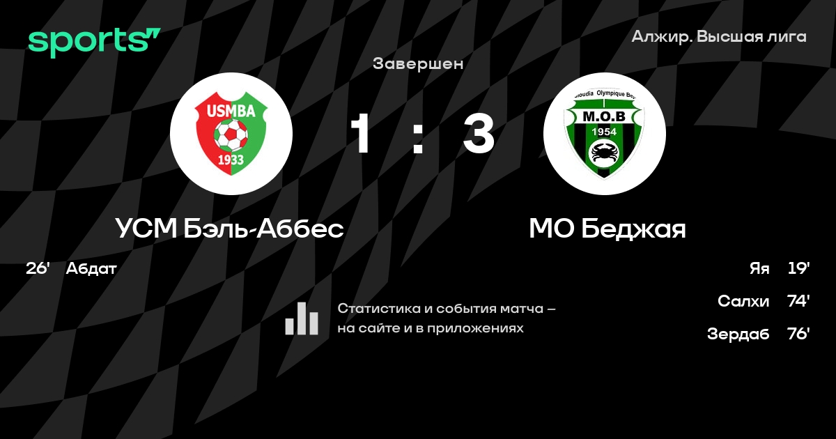 УСМ Бэль-Аббес - МО Беджая: составы на матч