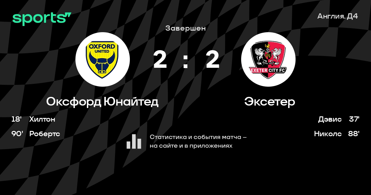Оксфорд Юнайтед - Эксетер: положение в турнире