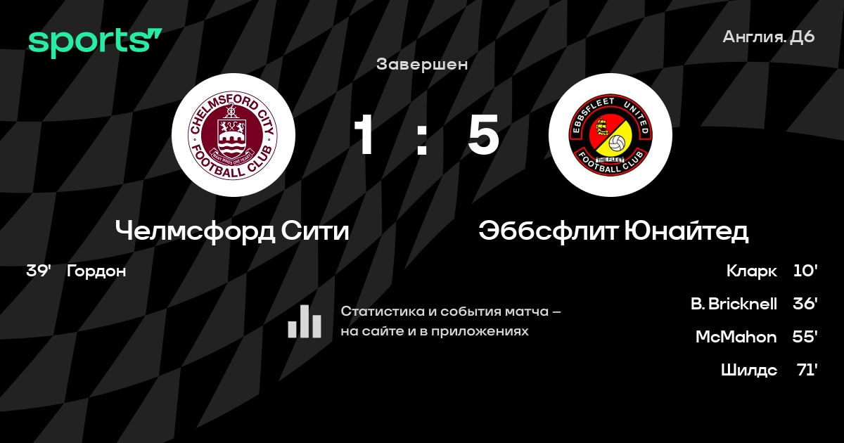 Челмсфорд Сити – Эббсфлит Юнайтед: коэффициенты