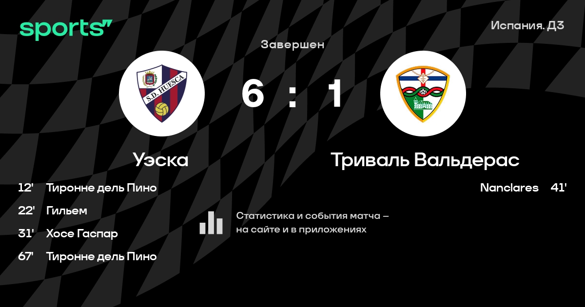 Хименес - Гарсия, Альварес, Гальвес, Давид Морильяс - Тиронне дель Пино, Камачо, Рос, Хосе Гаспар - Gassama, ГильемЗапасные: Чуэка, Хосан, Cabezas Chounavelle, Elbaile Sánchez, Эснайдер