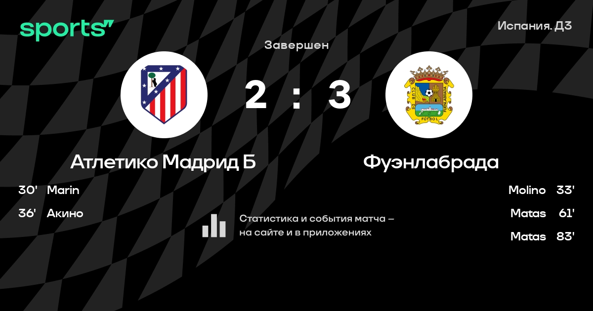 Трансляция Атлетико Мадрид Б - Фуэнлабрада