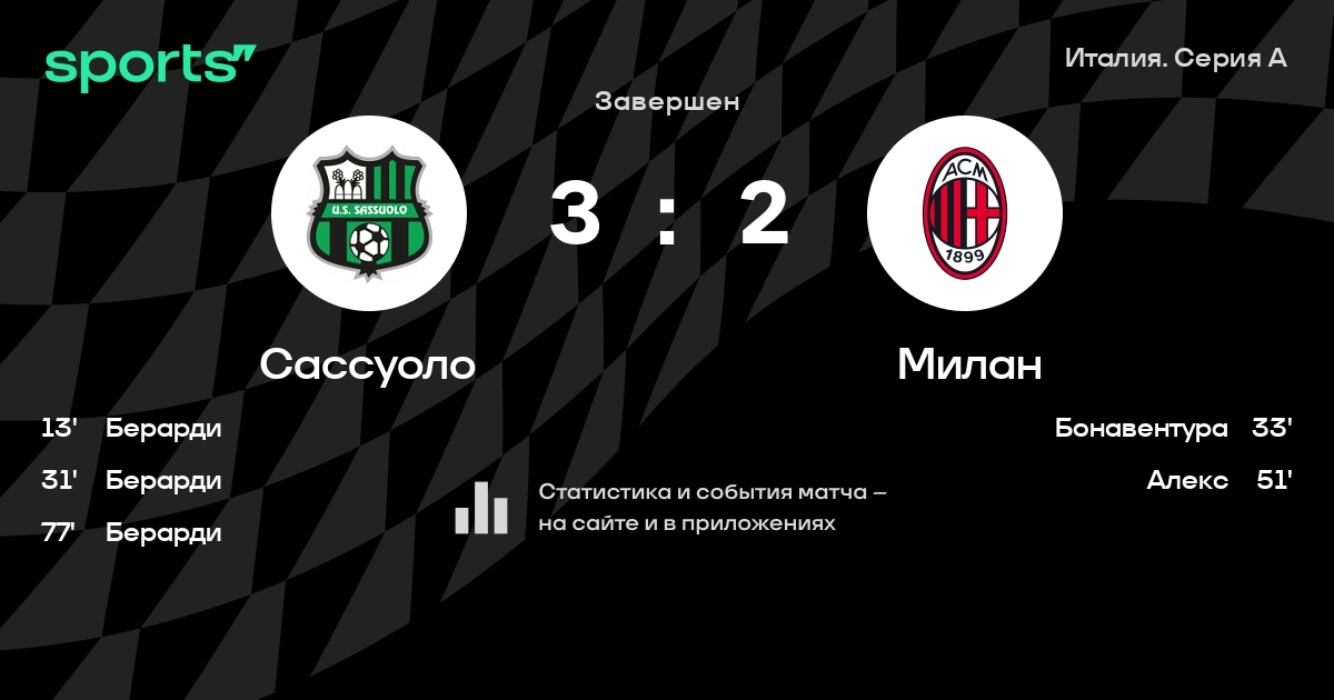 Диего Лопес - Бонера, Палетта, Алекс, Абате - ван Гинкел, де Йонг, Поли - Бонавентура, Дестро, ХондаЗапасные: Гори, Аббьяти, Сапата, Дзаккардо, Мексес, Альбертацци, Масталли, Сусо, Эль-Шаарави, Паццини