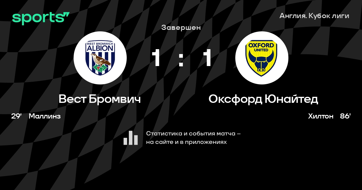 Вест Бромвич - Оксфорд Юнайтед: положение в турнире