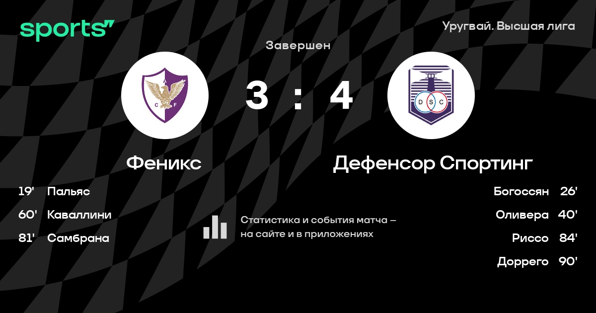 Табарес - Альвес, Пальяс, Сильва, Доррего - Самбрана, Скетино, Ферро - Медина, Боне, КаваллиниЗапасные: Асеведо, Габриэлли, Банчеро, Перг, Папа, Бланко, Уотермэн
