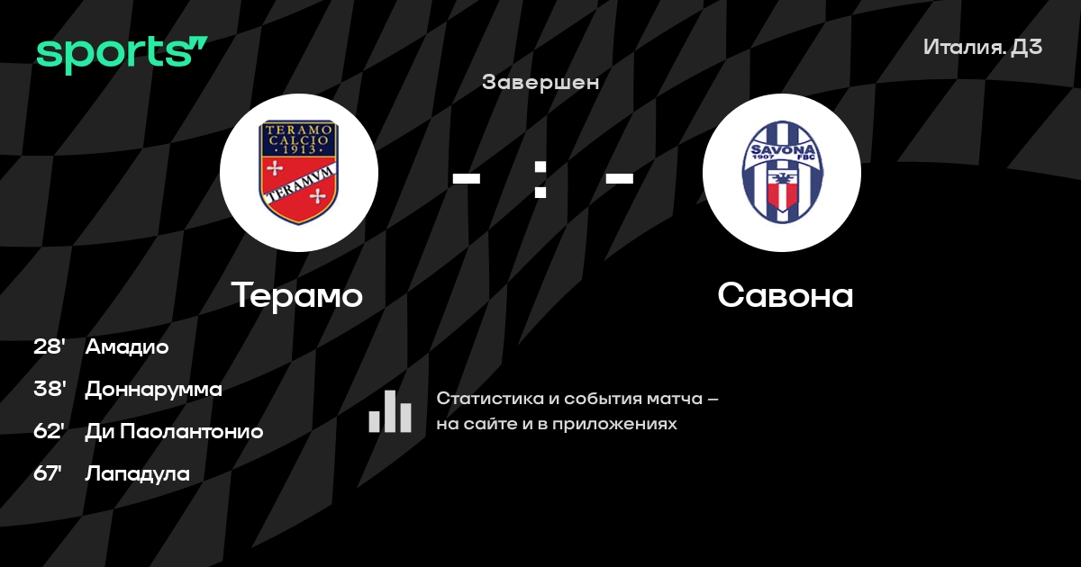 Тонти - Brugaletta, Masullo, Scipioni, Speranza - Ди Паолантонио, Cenciarelli, Амадио - Лападула, Petrella, ДоннаруммаЗапасные: Серрайокко, Caidi, Ди Маттео, Лулли, D'Egidio, Буонаюто, Bucchi