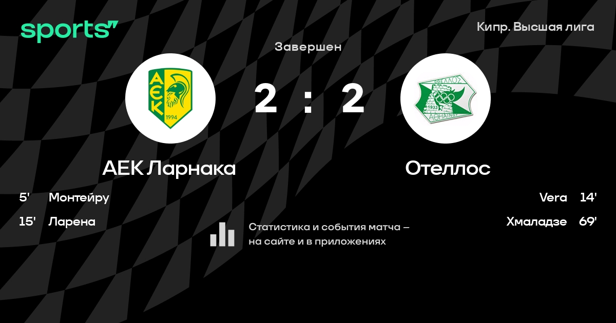 | 2 | АЕК Ларнака | 32 | 17 | 8 | 7 | 56 | 31 | +25 | 59 | ||
