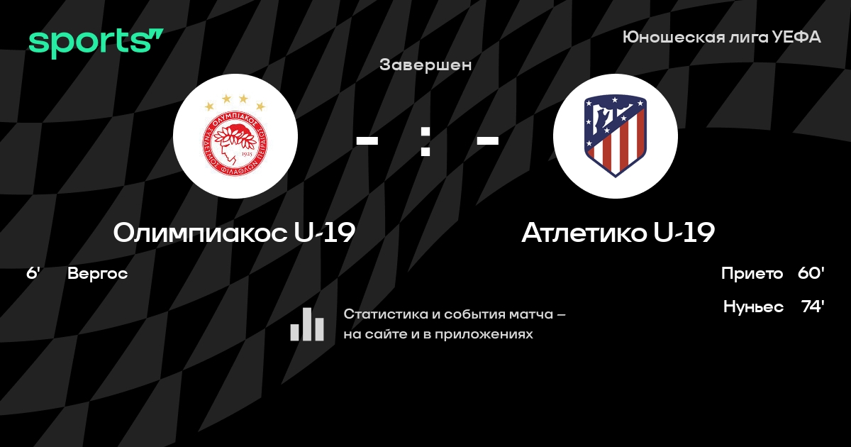 Трансляция Олимпиакос U-19 - Атлетико U-19