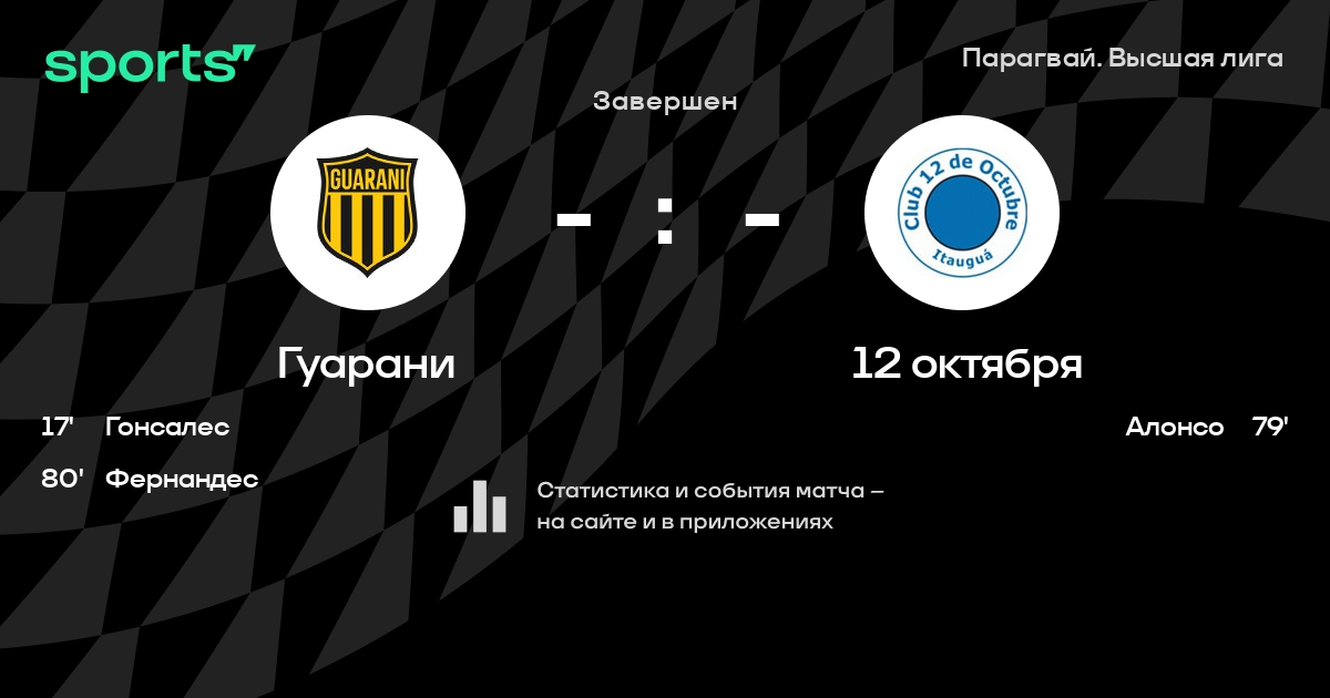 Гуарани – 12 октября: 12 октября забивает в 4 последних матчах против этого соперника