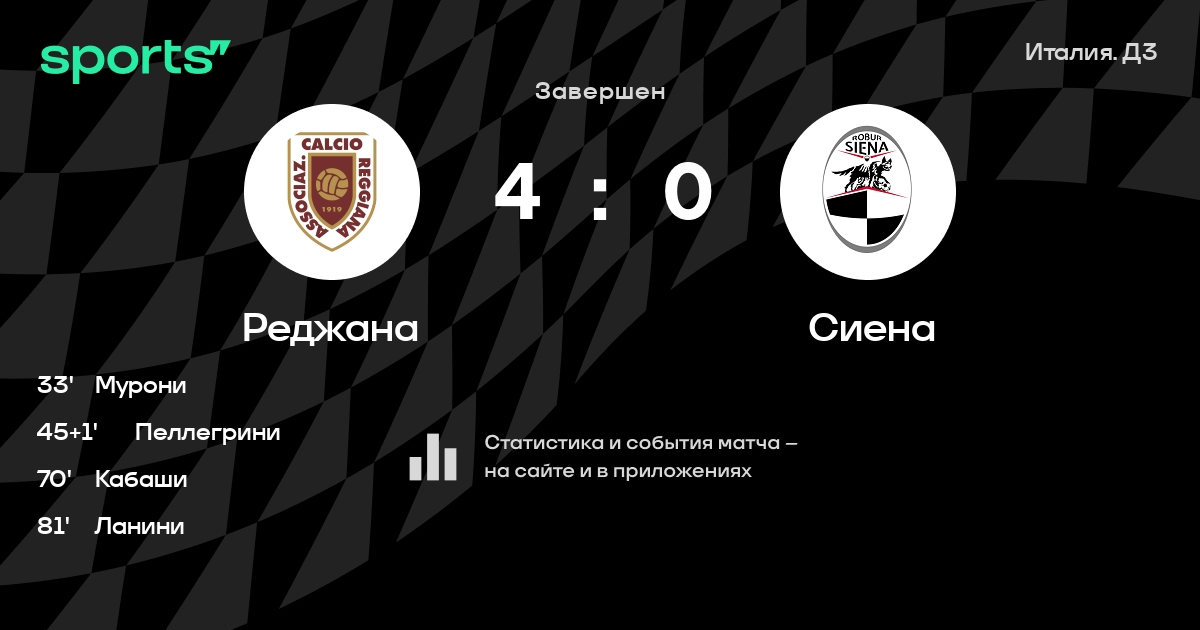Реджана – Сиена: коэффициенты