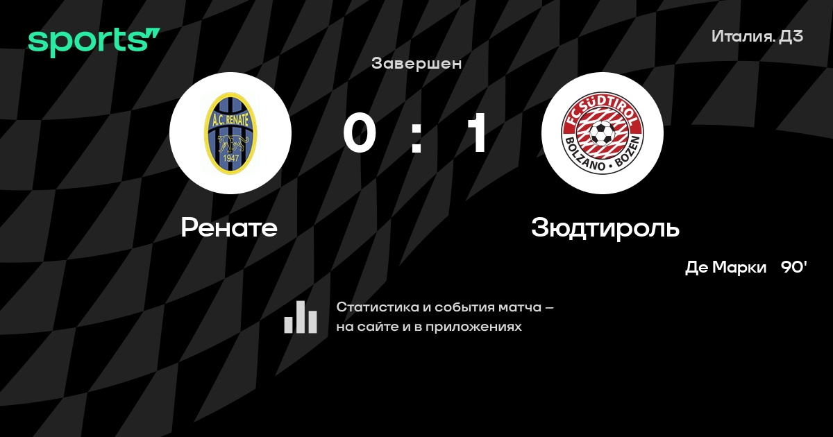 Ренате – Зюдтироль: Зюдтироль не пропускает в 1 из 8 последних матчей против этого соперника