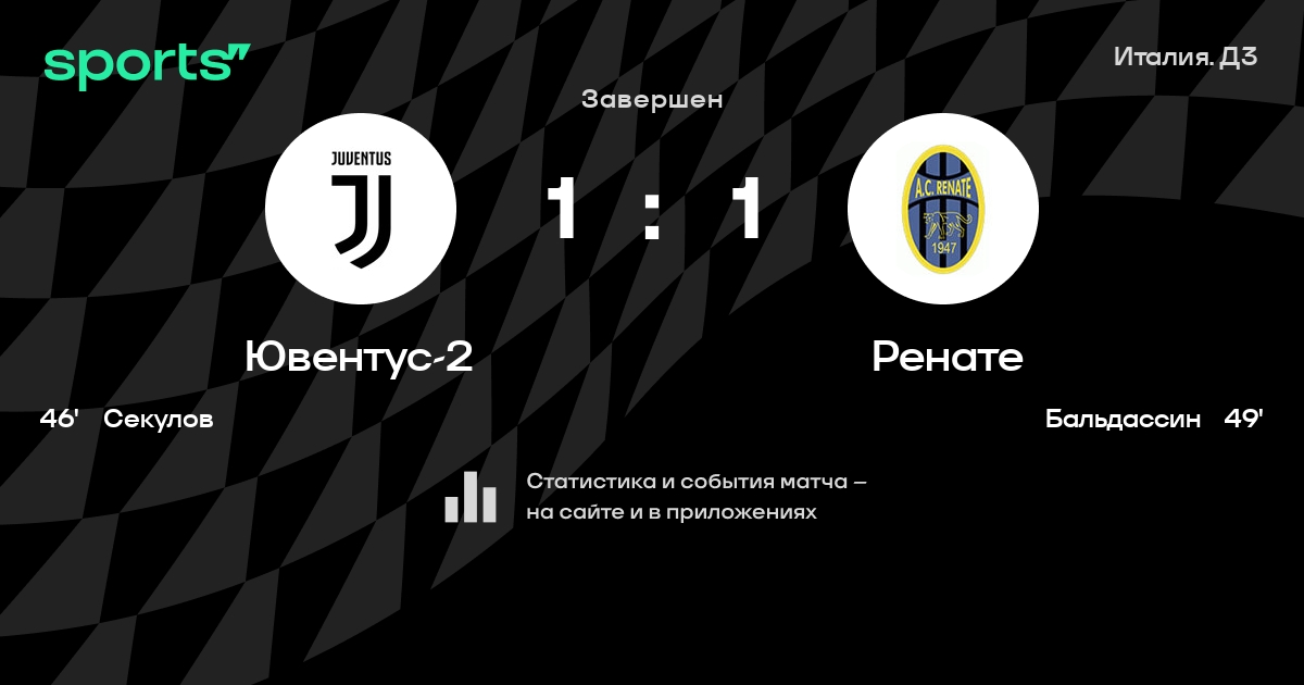 Ювентус-2 – Ренате: Ренате забивает в 7 из 8 последних матчей против этого соперника