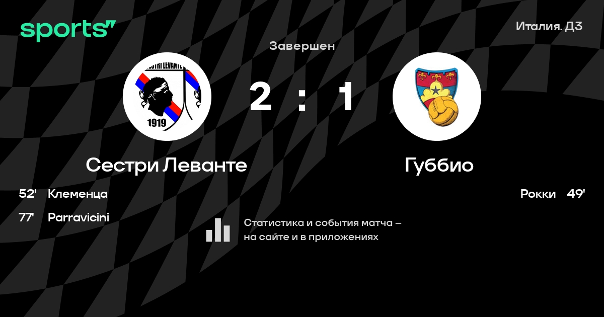 Результат прошлой игры в турнире «Серия С»: Сестри Леванте – AC Carpi 1:3. После 19 туров Сестри Леванте набирает 13 очков и занимает 19 место в турнире. Лучший бомбардир команды – N. Parravicini: он забил 4 в 16 матчах. Сестри Леванте не может выиграть в 12 последних матчах в рамках турнира «Серия С». В 4 последних матчах в турнире «Серия С» Сестри Леванте обязательно забивает. Сестри Леванте пропускает в 6 последних матчах в турнире «Серия С». В последних 5 играх Сестри Леванте забивает 6 голов. В последних 5 играх Сестри Леванте пропускает 14 голов.