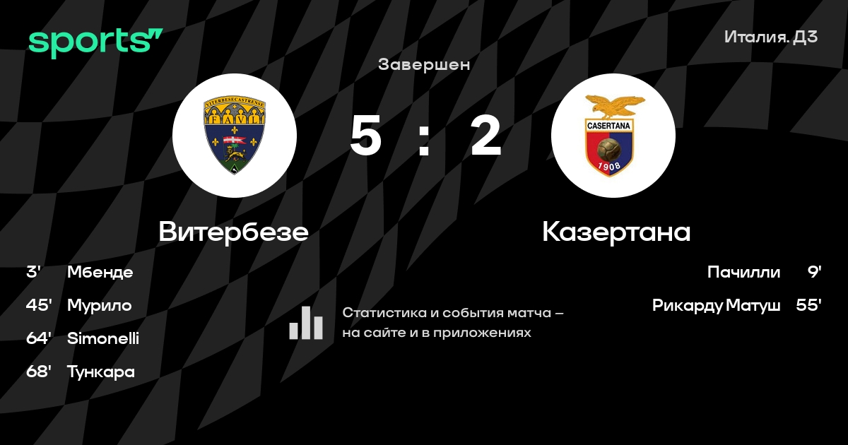 Avella - Бускьяццо, Карилло, Дель Гроссо, Hadziosmanovic - Россо, Santoro, Икарди, Matese, Пачилли - Рикарду МатушЗапасные: Живкович, Джекич, Рилло, De Vivo, Чирьелло, Полито, Варешанович, Иццилло, Туркетта, Бордин, Лонго, Кастальдо