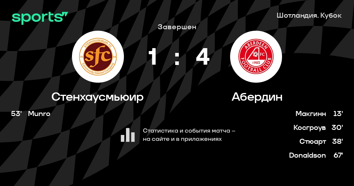Смит - Donaldson, Munro, McBrearty, Reid - Cook, Dickson, Ferry, Дати - Halleran, McGuiganЗапасные: Макминн, Гарсия Тена, Гиббонс, Пэтерсон, McMenamin