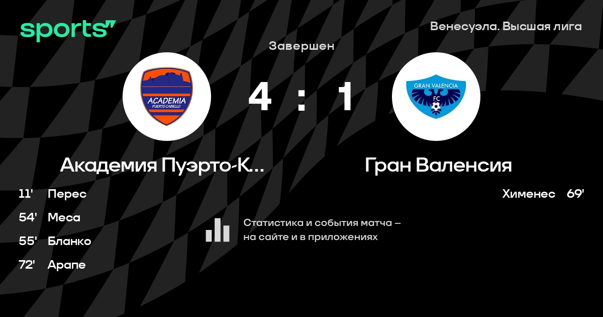 Академия Пуэрто-Кабельо – Гран Валенсия: Гран Валенсия не пропускает в 1 из 7 последних матчей против этого соперника