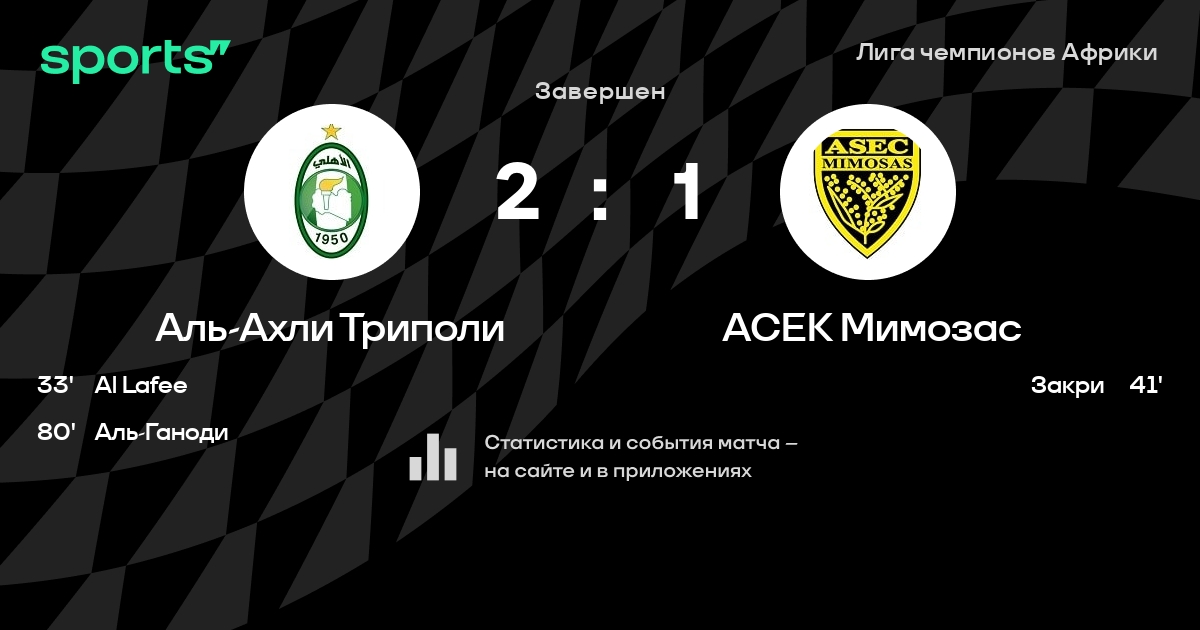 Трансляция Аль-Ахли Триполи - АСЕК Мимозас