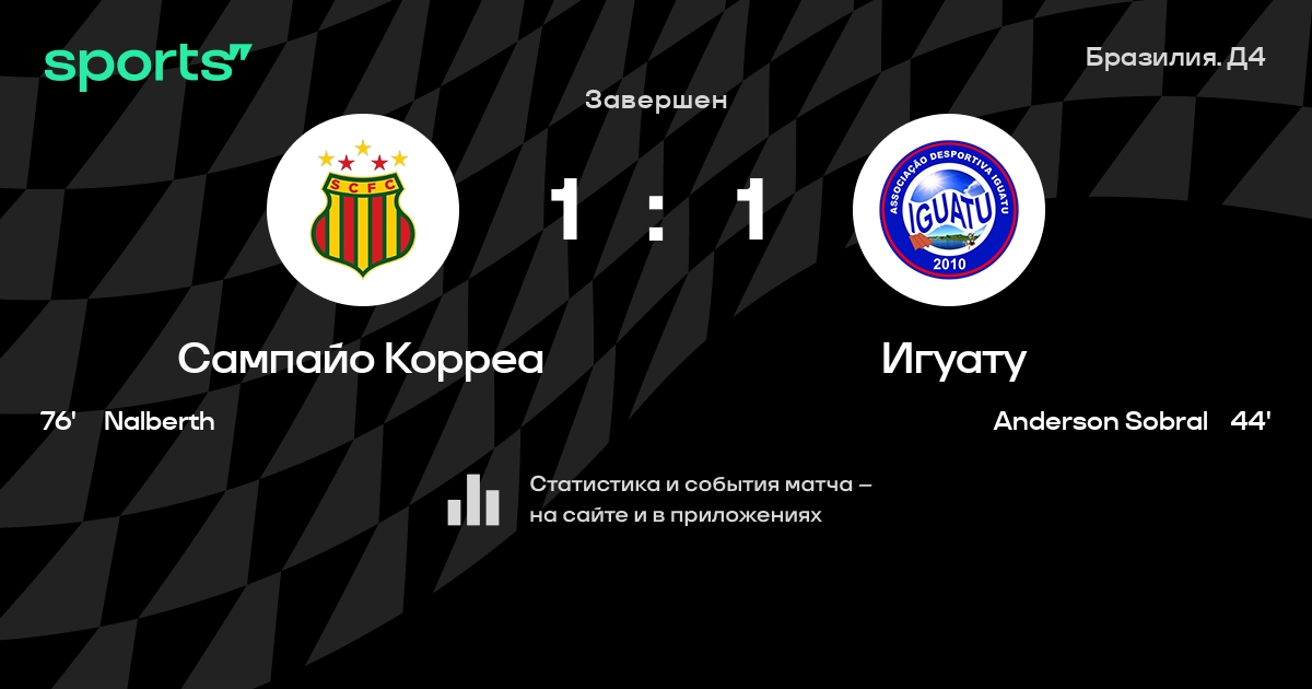 Результат прошлой игры в турнире «Серия D»: Парнаиба – Сампайо Корреа 2:2. После 13 туров Сампайо Корреа набирает 20 очков и занимает 3 место в турнире. Лучший бомбардир команды – Jair: он забил 5 в 28 матчах. Сампайо Корреа не проигрывает в 3 последних матчах в рамках турнира «Серия D». В 3 последних матчах в турнире «Серия D» Сампайо Корреа обязательно забивает. В последних 5 играх Сампайо Корреа забивает 9 голов. В последних 5 играх Сампайо Корреа пропускает 4 голов.