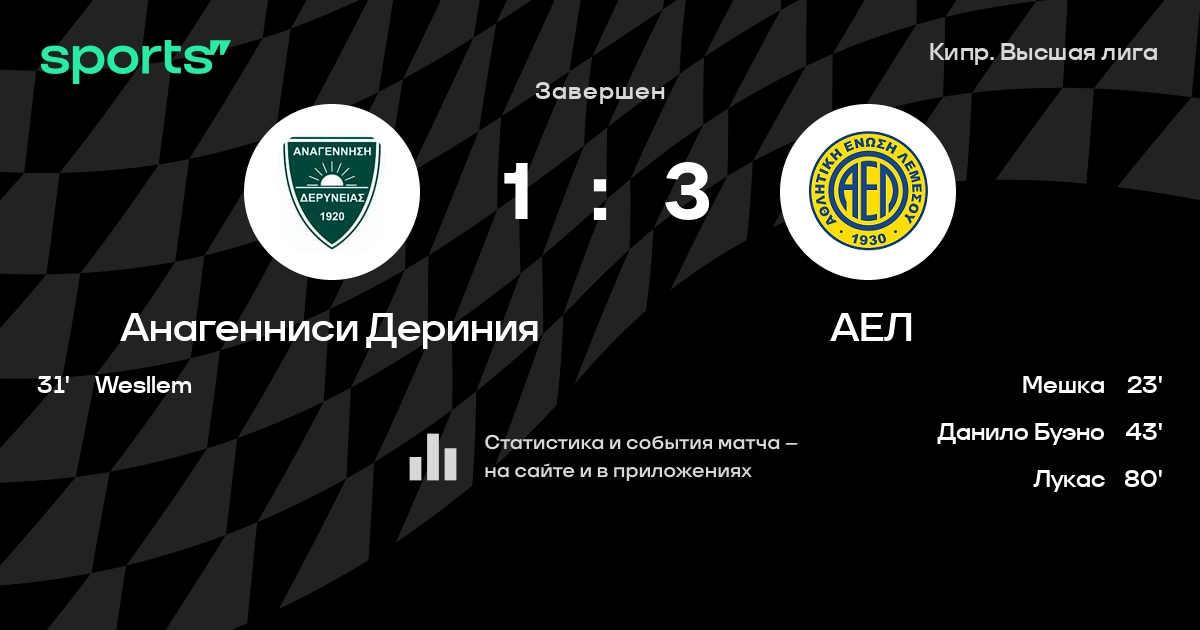 Анагенниси Дериния – АЕЛ: коэффициенты