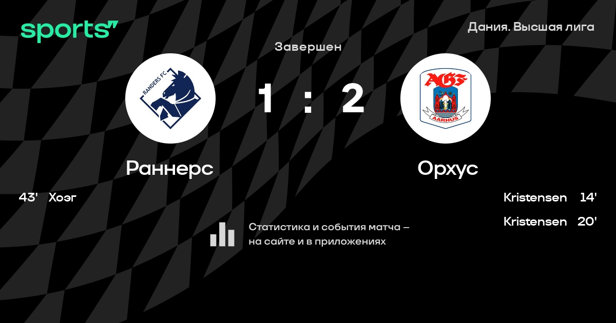 Результат прошлой игры в турнире «Суперлига»: Силькеборг – Раннерс 0:0. После 17 туров Раннерс набирает 19 очков и занимает 9 место в турнире. Лучший бомбардир команды – Мохамед Туре: он забил 4 в 18 матчах. Раннерс не может выиграть в 6 последних матчах в рамках турнира «Суперлига». Орхус имеет в активе больше всех побед в турнире – 11. В 3 последних матчах в турнире «Суперлига» Раннерс обязательно забивает. В последних 5 играх Раннерс забивает 2 голов. В последних 5 играх Раннерс пропускает 5 голов.
