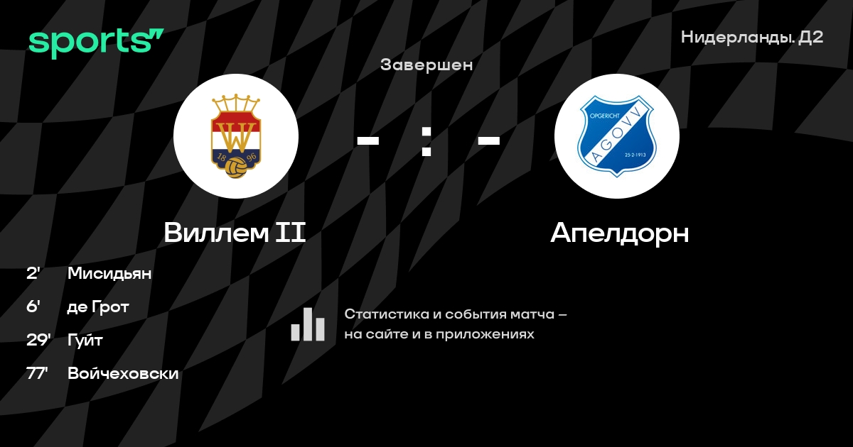 | 5 | Виллем II | 34 | 17 | 7 | 10 | 67 | 41 | +26 | 58 | ||