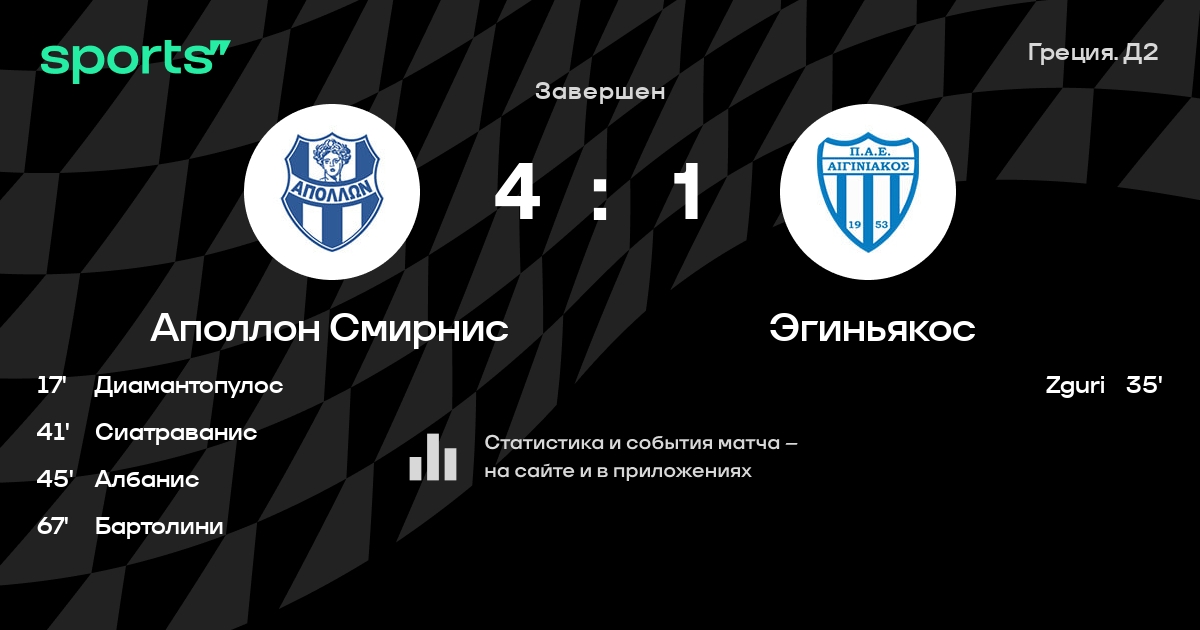 В последних 5 играх Аполлон Смирнис забивает в среднем 1.20 гола за игру