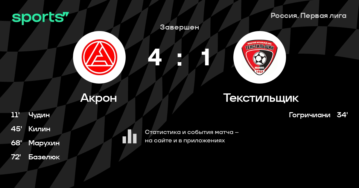 Акрон – Текстильщик: Акрон забивает в 3 последних матчах против этого соперника