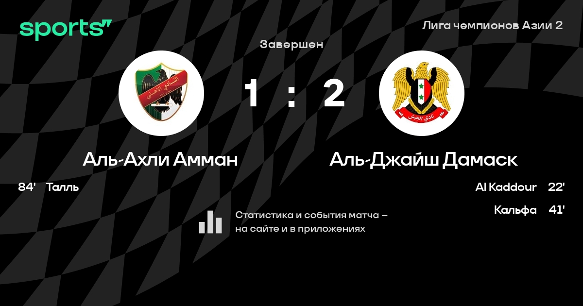 Аль-Ахли Амман – Аль-Джайш Дамаск: коэффициенты