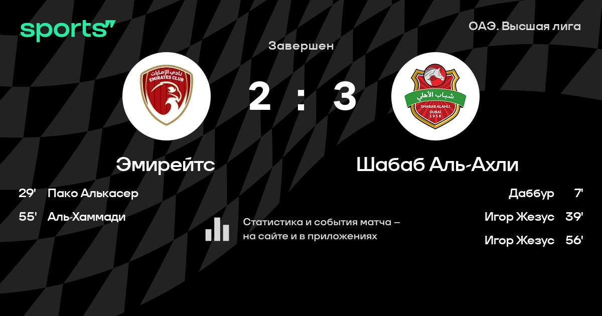 Эмирейтс – Шабаб Аль-Ахли: Шабаб Аль-Ахли побеждает в 16 последних очных матчах