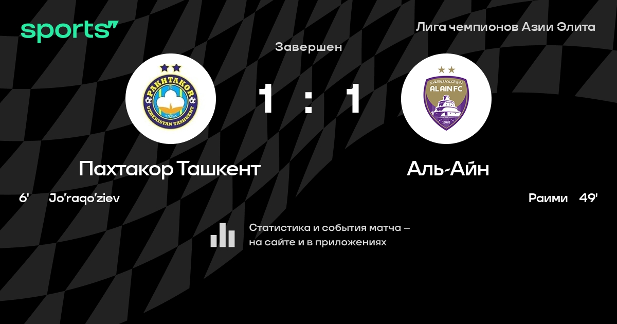Результат прошлой игры в турнире «Лига чемпионов Азии Элита»: Аль-Айн – Аль-Ахли Джидда 1:2. После 5 туров Аль-Айн набирает 1 очков и занимает 12 место в турнире. Лучший бомбардир команды – Суфьян Раими: он забил 10 в 13 матчах. Аль-Айн проигрывает в 4 последних матчах в рамках турнира «Лига чемпионов Азии Элита». В 9 последних матчах в турнире «Лига чемпионов Азии Элита» Аль-Айн обязательно забивает. Аль-Айн пропускает в 9 последних матчах в турнире «Лига чемпионов Азии Элита». В последних 5 играх Аль-Айн забивает 7 голов. В последних 5 играх Аль-Айн пропускает 13 голов.
