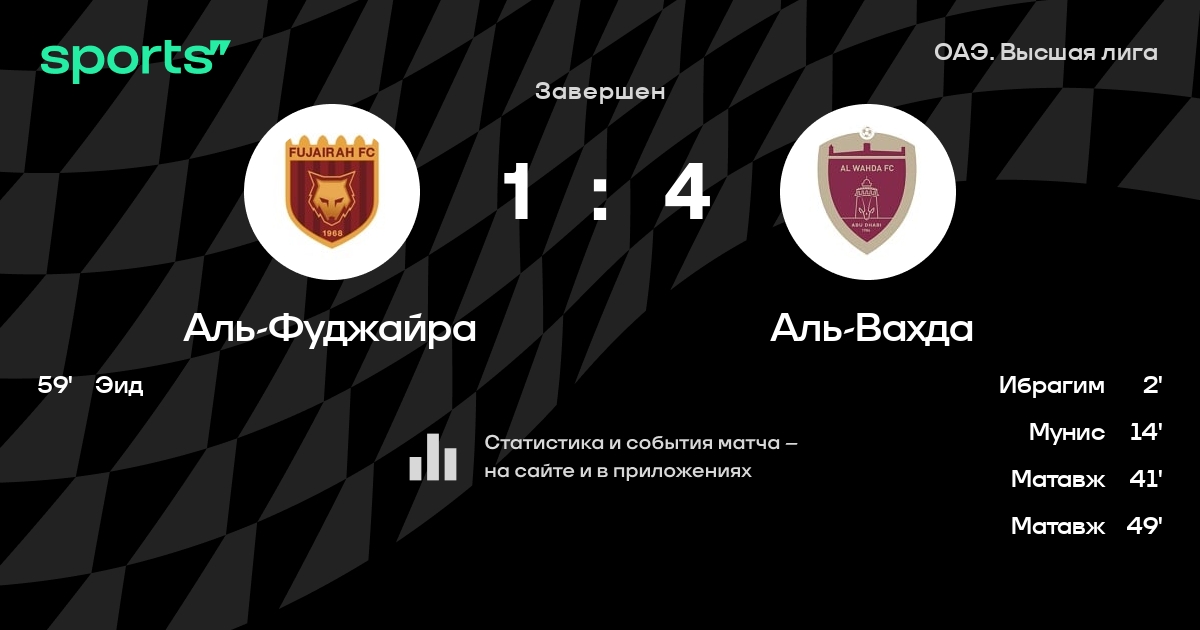 Аль-Фуджайра – Аль-Вахда: Аль-Вахда не проигрывает в 6 из 8 последних матчей против этого соперника